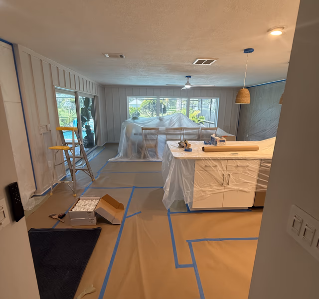 This Port Charlotte home project focused on modernizing every room with fresh, cohesive color. We repaired damaged drywall, updated aging finishes, and transformed a dated layout into a bright, inviting space.